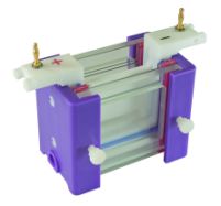 The preferred unit for routine mini protein electrophoresis, the OmniPAGE mini is constructed using the latest injection molding manufacturing techniques. This gives a high quality, low cost product with unsurpassed finish, durability and strength. The unit incorporates a sealing system which is compatible with all major types of 8 x 10cm and 10 x 10cm precast gel. Gel casting and running utilize the same insert, no transfer of glass plates during gel casting is necessary. The insert contains the option of sliding clamps or just one screw per clamping bar side allowing very rapid set up of both hand cast and precast gels. Ultra soft silicone seals and pressure bars which surround the glass plates guarantee leak proof gel casting. 2mm thick glass plates prevent breakage and have bonded spacers for convenience. Accessory electroblotting and tube gel modules are available which use the same outer tank and lid.